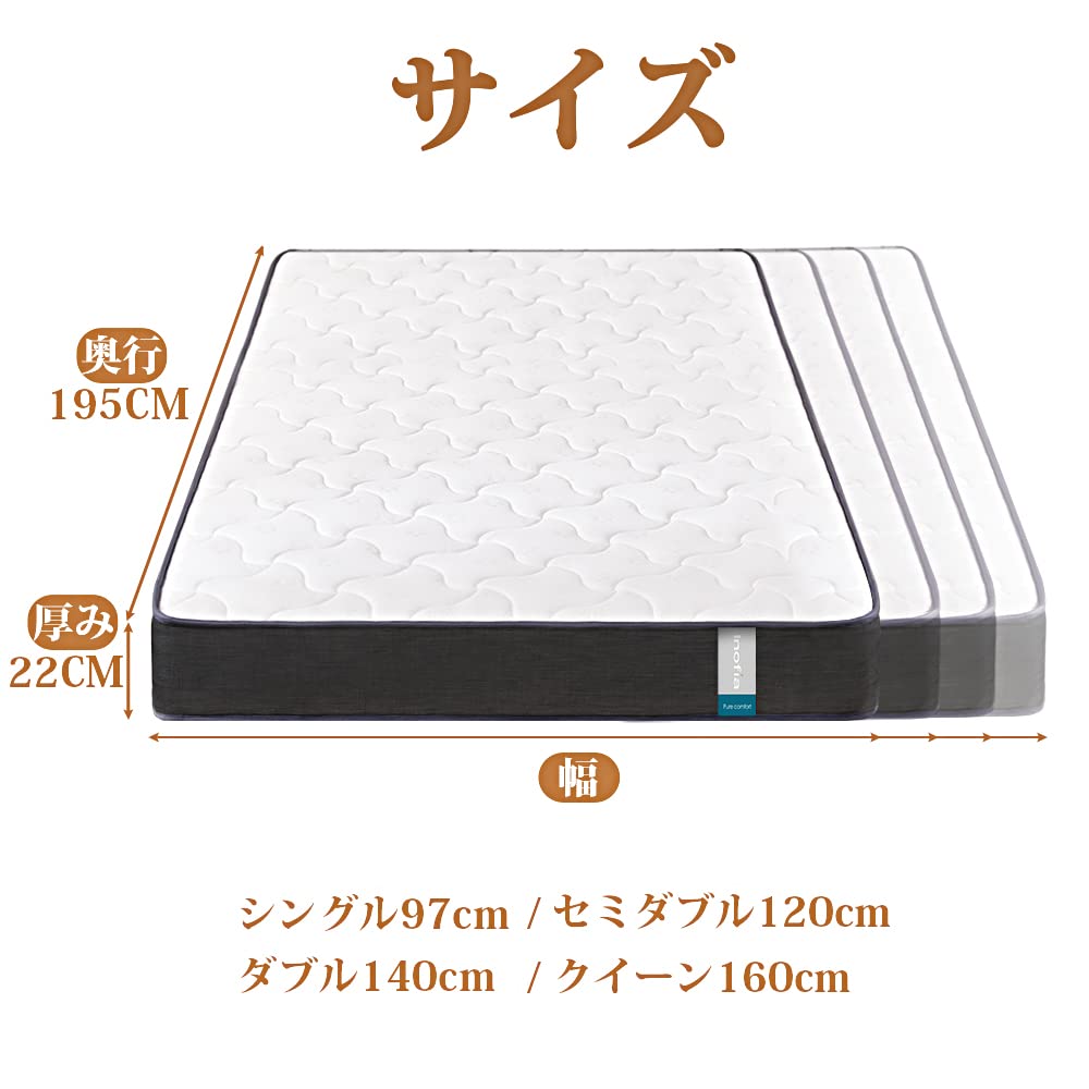 Inofia マットレス ダブル マットレス専門ブランド 高反発マットレス 極厚22CM ベッドマットレス ポケットコイル 体圧分散 通気性 圧縮梱包 高密度ウレタン 底付き感無し 防臭 持ち運び便利 寝返りサポート 腰の負担を軽減