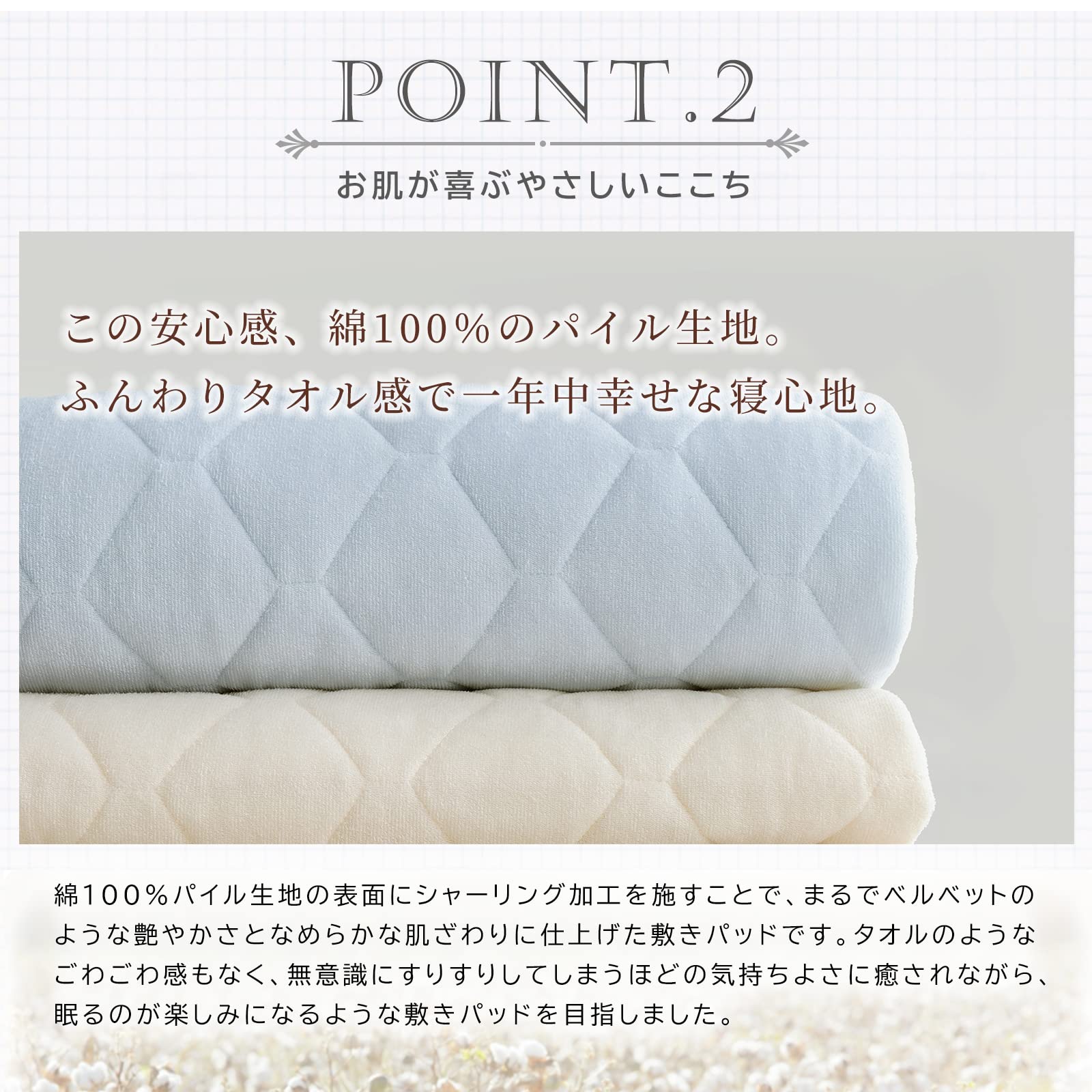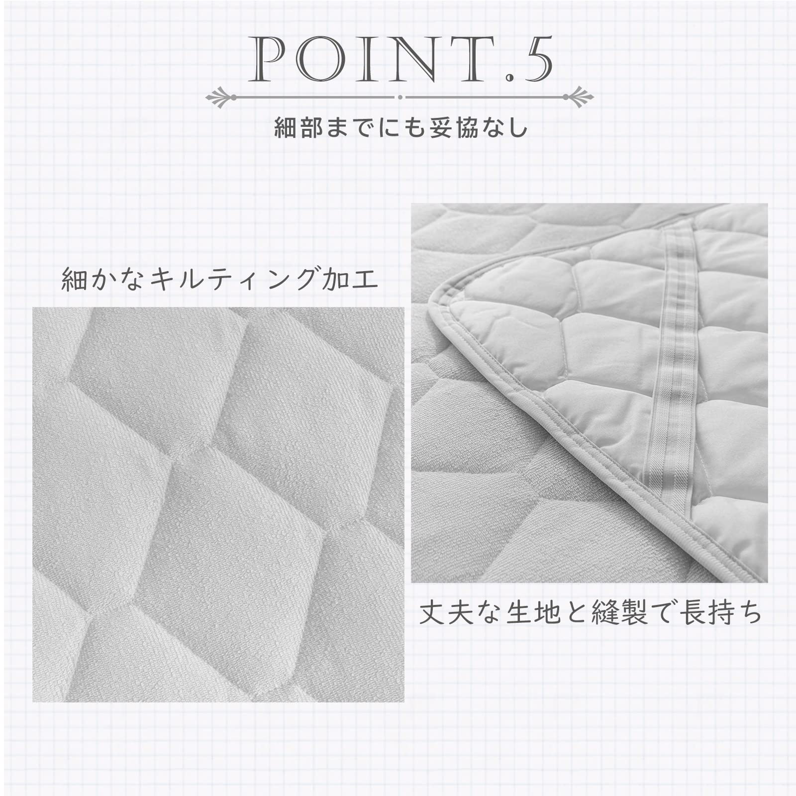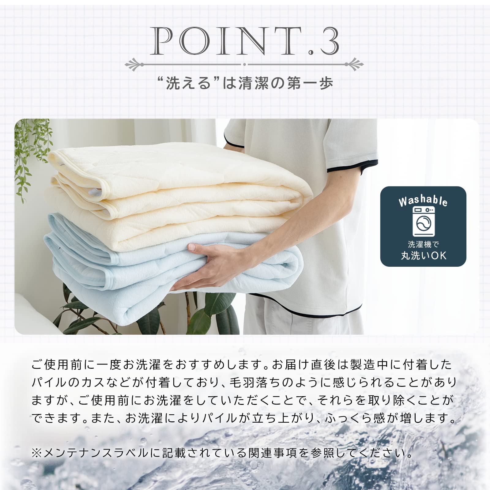 【丸洗いOK!いつも清潔に】ご家庭の洗濯機でマットレスパッドを丸洗いができるので、手軽に清潔な状態を保つことができます。新品時は製造時の繊維くずが付着していることがあるため、初回は洗濯機での洗濯をオススメします。洗濯することで繊維くずが取れ、パイルが立ち上がるので、ふわっと柔らかな手触りになります。【品質保証】万が一商品に不具合がある場合、弊社にご連絡いただければ迅速に対応いたします。1年間の品質保証があるから、安心してお買い求め頂けます。