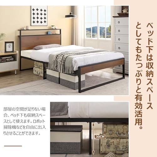 【収納スペースあり】ベッドの下には30CMの収納スペースがあり、収納スペースとしてもたっぷりと有効活用していただけます。掃除機やロボット掃除機などを自由に出入りさせることができます。