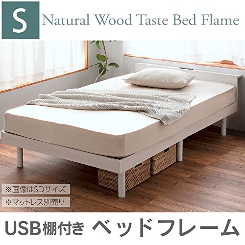 数量1: アイリスプラザ ベッド ベッドフレーム 2口コンセント・USBポート付き 棚付きベッド 3段階 高さ調整 すのこベッド シングル ホワイト