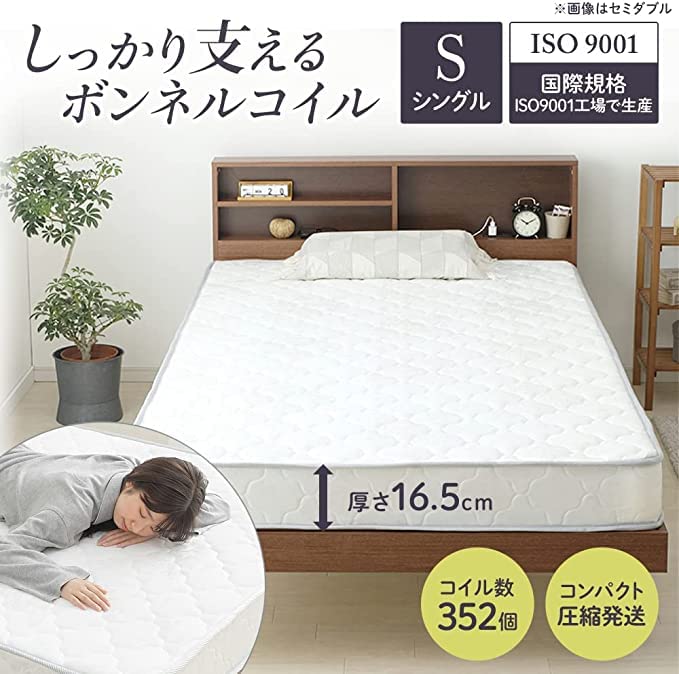 数量1: アイリスプラザ マットレス ボンネルコイル 厚み16cm コイル352個 高密度 硬め しっかり 寝返りしやすい 通気性 ウレタン2層 圧縮梱包 シングル ホワイト