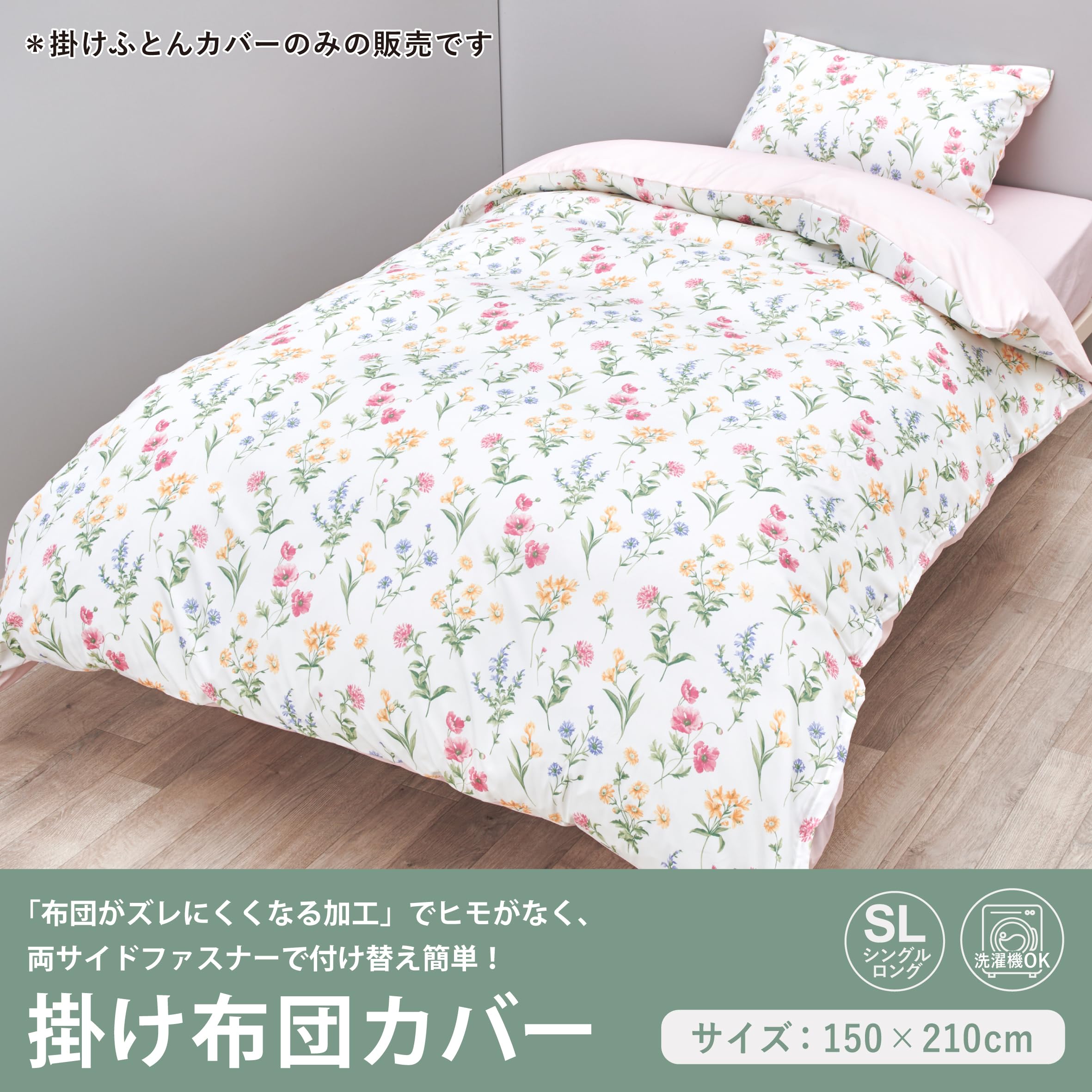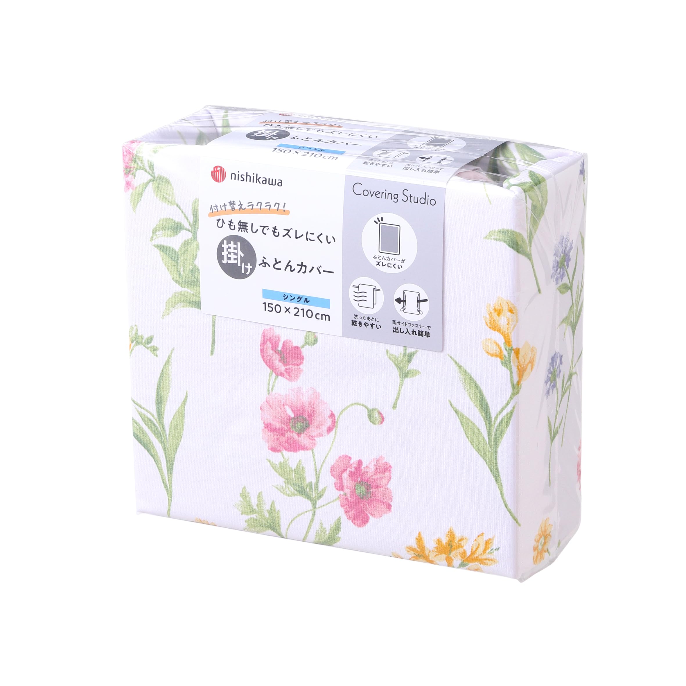 nishikawa【西川】 掛け布団カバー シングル 洗える 布団がズレにくくなる加⼯ ヒモ無し 両サイドファスナーでふとんの出し⼊れ 簡単 時短 花柄 カバーリングスタジオ CT4005MU ピンク PI04300060