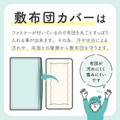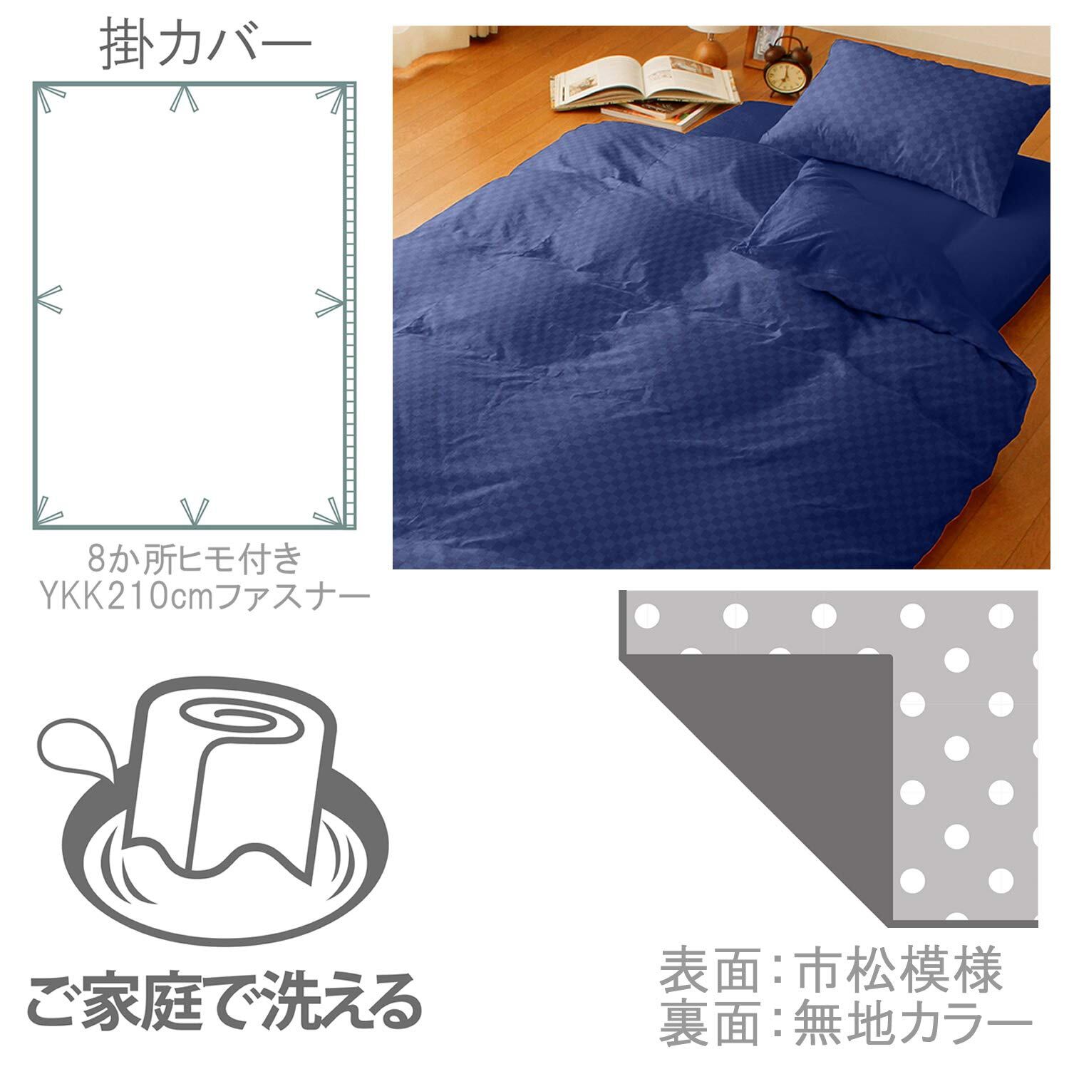 掛布団カバーの内側は8か所ヒモ付き。布団とつなげて使用中のズレ防止。<br>掛・敷布団カバーは布団の出し入れがしやすい片側全開ファスナー。<br>枕カバーは合わせ式。(ファスナー無)