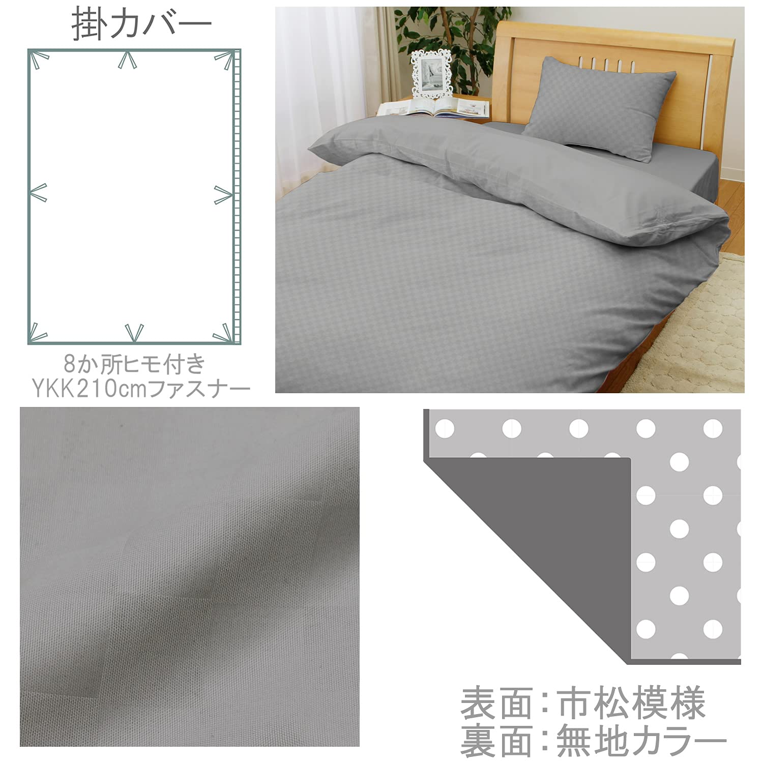 メリーナイト 布団カバー シングル3点セット 市松柄 ダークグレー 敷布団用 (掛け布団カバー 敷き布団カバー 枕カバー) 洗い替え 模様替え ゲスト用 速乾 シワになりにくい L3-300-03