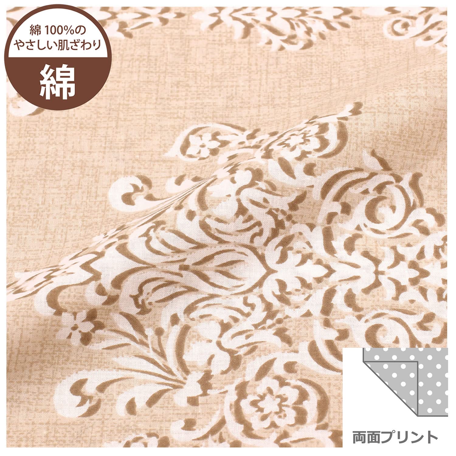メリーナイト(Merry Night) 掛け布団カバー 「ダマスク」 ベージュ シングルロング 約150×210cm 両サイドファスナー ふとんが入れやすい 綿100% オールシーズン 洗える FF12117-96