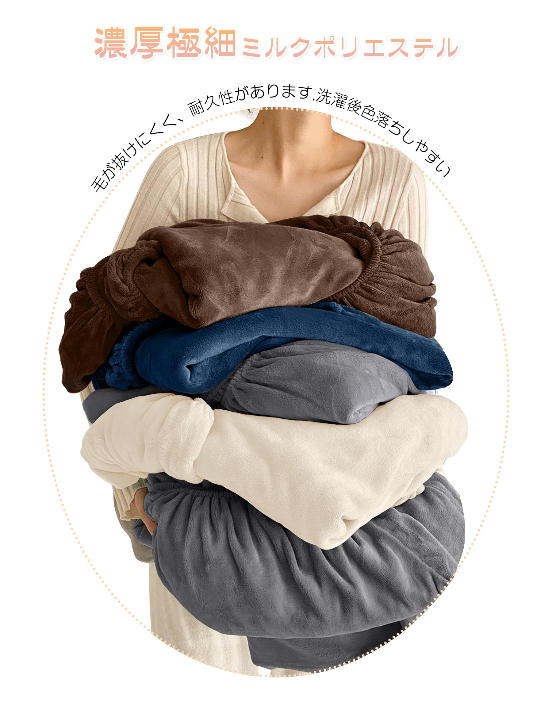 【暖かさが格段にアップ! 】 ミルクベルベットの魅力は、高い保温性と雲の上に寝ているような柔らかな肌触りの良さにあります。 暖かいため、寒い冬には欠かせない生地ともなります。 マットレスの底冷えを防いで背中もおしりも暖かさを感じることができます。 繊維の間に空気を溜め込み、体温を逃がさず暖かさを保ちます。 一番大切なのは、寒い季節に体にぴったりフィットし、首肩の部分も隙間ができないので保温性が高いです。 幸せな気分になれる柔らかな肌触りが人気です。 保温効果もあり、寒い季節には欠かせないアイテムです。
