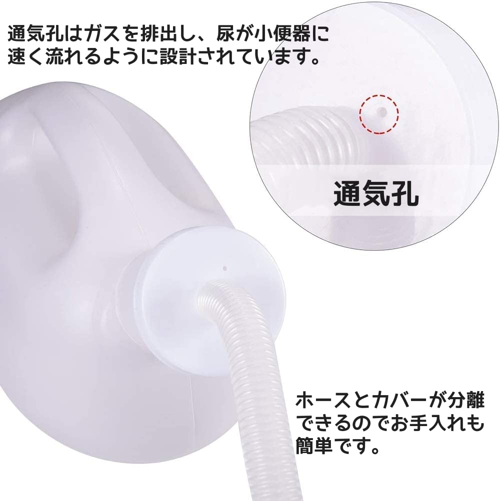 「持ち運び便利」 男性用小便器は軽量で持ち運びが簡単です。臭いを防ぐための消臭蓋が付属しています。洗浄後に再利用することができ、チューブと本体は分離して洗うことができます。