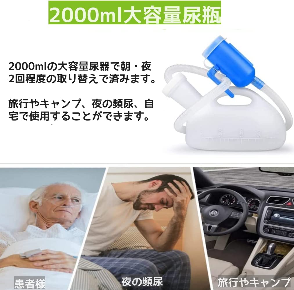 MOCOYEE 尿器 男性用尿瓶 2000ml 大容量 排尿ボトル 1.2mチューブ付き 採尿容器 しびん 介護便器 尿失禁用 高齢者用 旅行用
