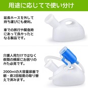 「大容量尿瓶」 2000mlの大容量尿器で朝・夜2回程度の取り替えで済みます。旅行やキャンプ、夜の頻尿、自宅で使用することができます。