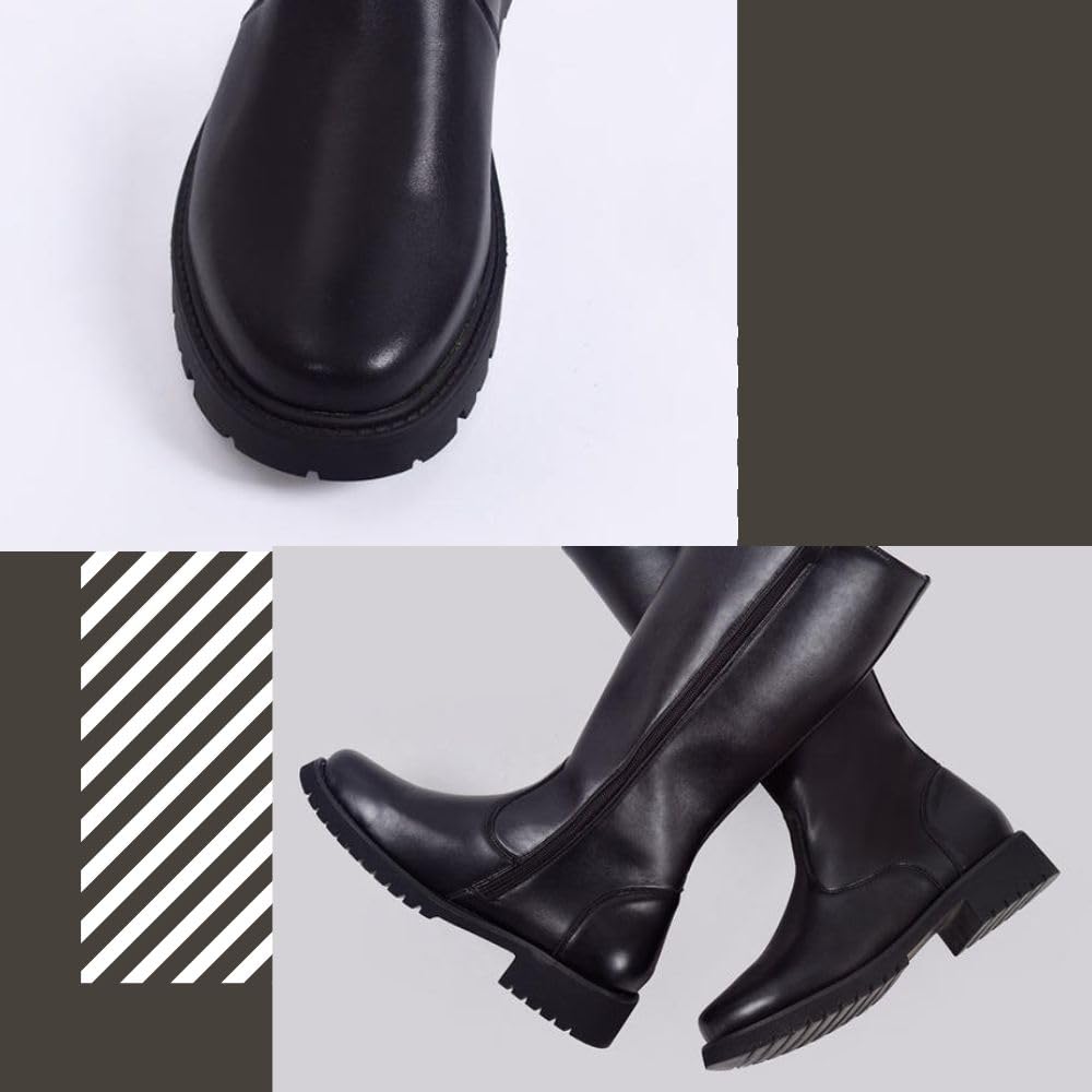 [MORASTYLE] バイク ロング ブーツ メンズ レディース 黒 ライダー 特攻ブーツ 旧車 PUレザー ハイカット ジッパー ファスナー