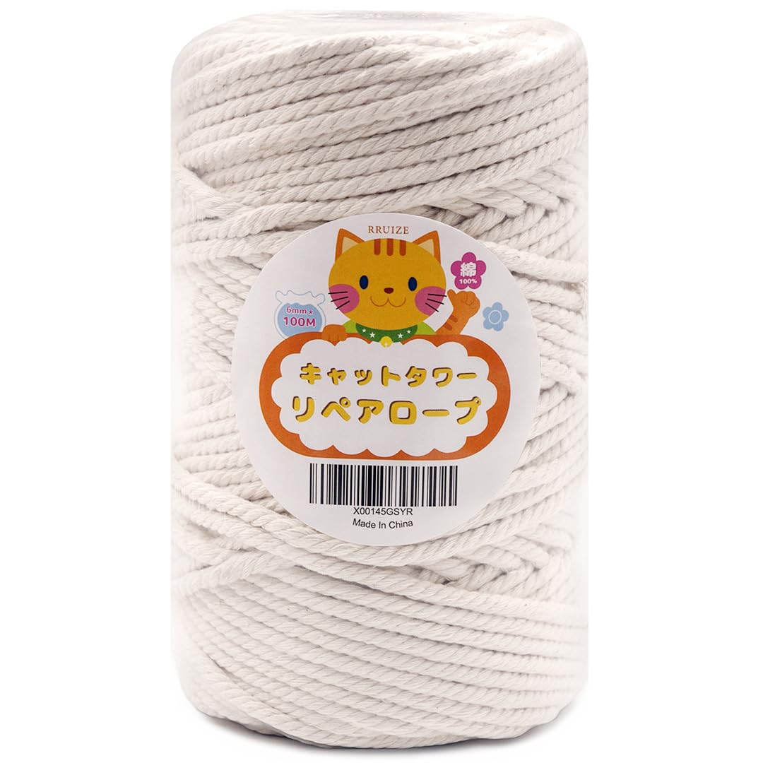 Rruizeキャットタワーリペアロープ 太さ6mm 綿縄 爪とぎ用 猫タワー キャットウォーク キャットタワー用 キャットクライミングフレームの修理の代替品 手作り DIY 園芸 (100m)