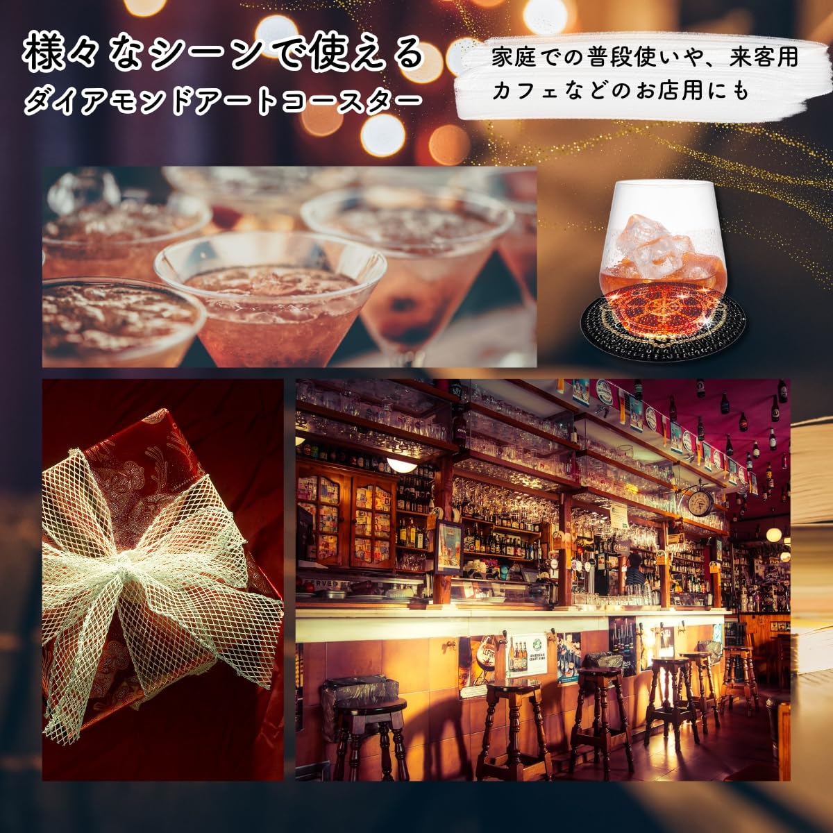 【安心の完全装備DIYキット】 コースター8枚、コルクマット、ホルダー、ダイヤモンドペン、接着剤、トレイ、ストーンなど、制作に必要な全ツールを完備。ダイヤモンドビーズでお子様とご一緒に制作体験ができます。高品質アクリル素材と強い粘着力で水洗い可能なため、お手入れが簡単。変形しにくく、色褪せにくいため、長期間美しさを保つ、プロ仕様のクラフトセットです。