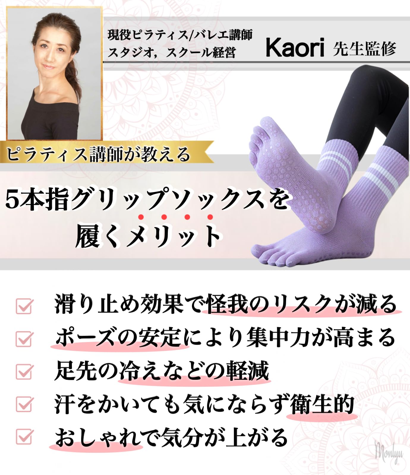 【現役ピラティス講師監修】快適に安心してエクササイズを行うためににプロから推奨されている滑り止め付き5本指ソックス。高機能なだけでなく可愛さもありトレーニングなどのモチベーションも上がります。7カラー/フリーサイズ(22〜25cm)/