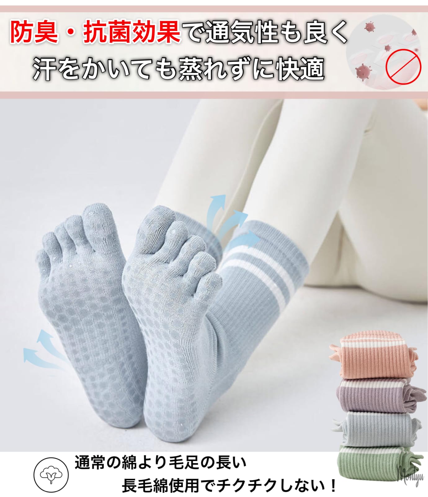 [Monlyu] ヨガソックス 5本指 滑り止め レディース ピラティスソックス ヨガ 靴下 抗菌防臭 ロング ピラティス スポーツ トレーニング グリップ ソックス すべりどめ ウェア 冷房対策 防寒対策 くつした くつ下 吸湿性 通気性 速乾 くすみカラー