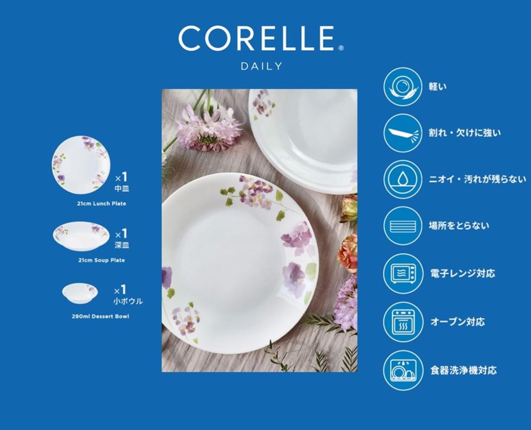 コレール(Corelle) 3点セット 中皿 深皿 小ボウル 割れにくい 軽量 電子レンジ対応 オーブン対応 食洗機対応 デイリー バイオレットミスト CP-8942