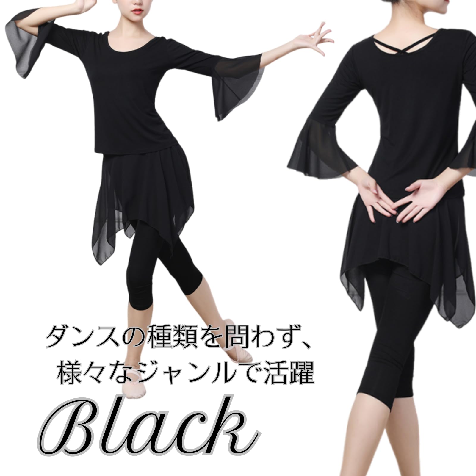 [Belle Iza Bella] ダンス 衣装 レディース トップス 社交ダンス モダンダンス 大人 ヨガ ウェア 練習着 無地 フレア 袖 薄手