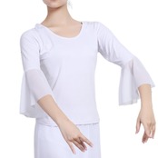 【在庫処分】[Belle Iza Bella] ダンス 衣装 レディース トップス 社交ダンス モダンダンス 大人 ヨガ ウェア 練習着 無地 フレア 袖 薄手
