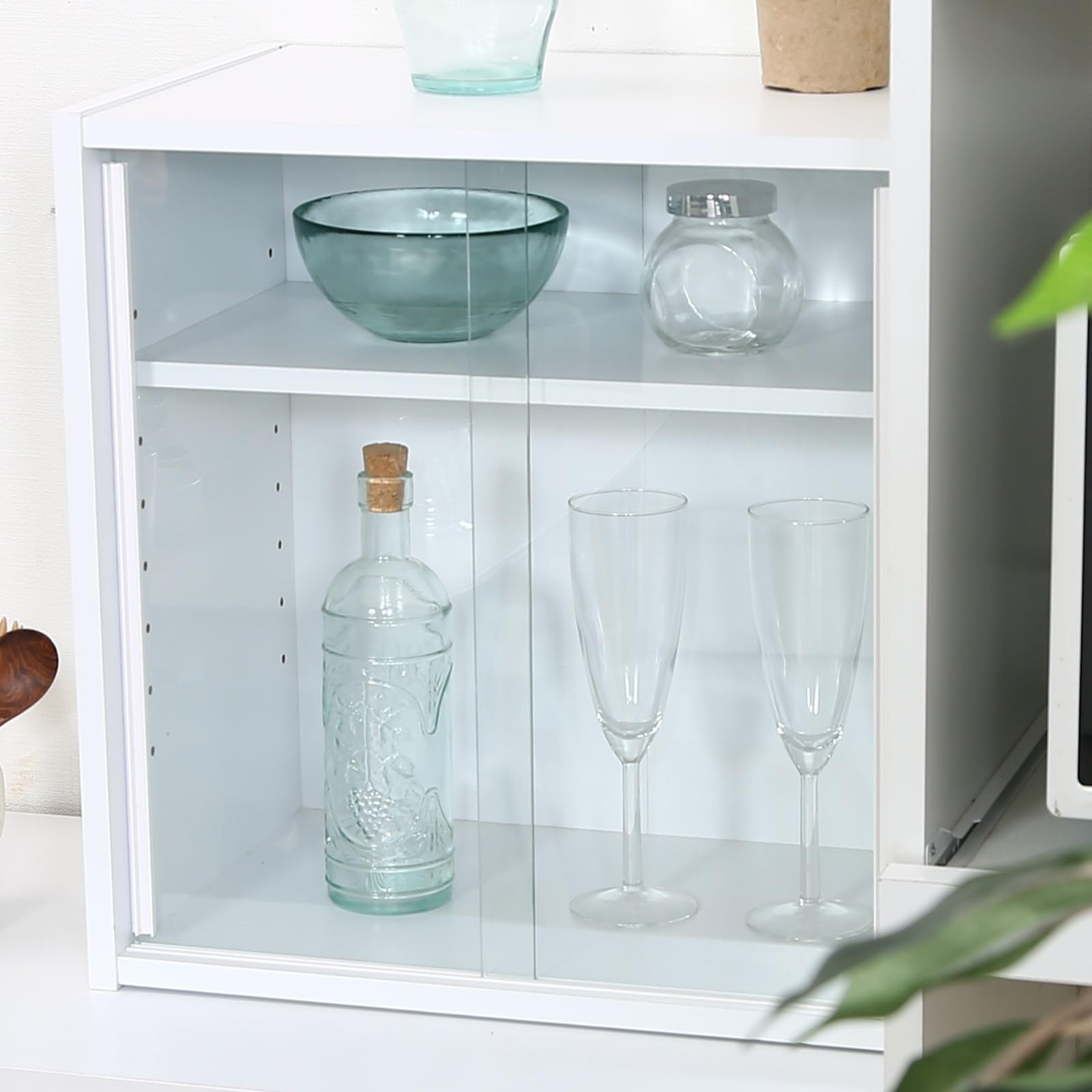 不二貿易 食器棚 キッチン収納 幅43×奥行29×高さ44cm ホワイト ガラス扉 可動棚 組立品 99434