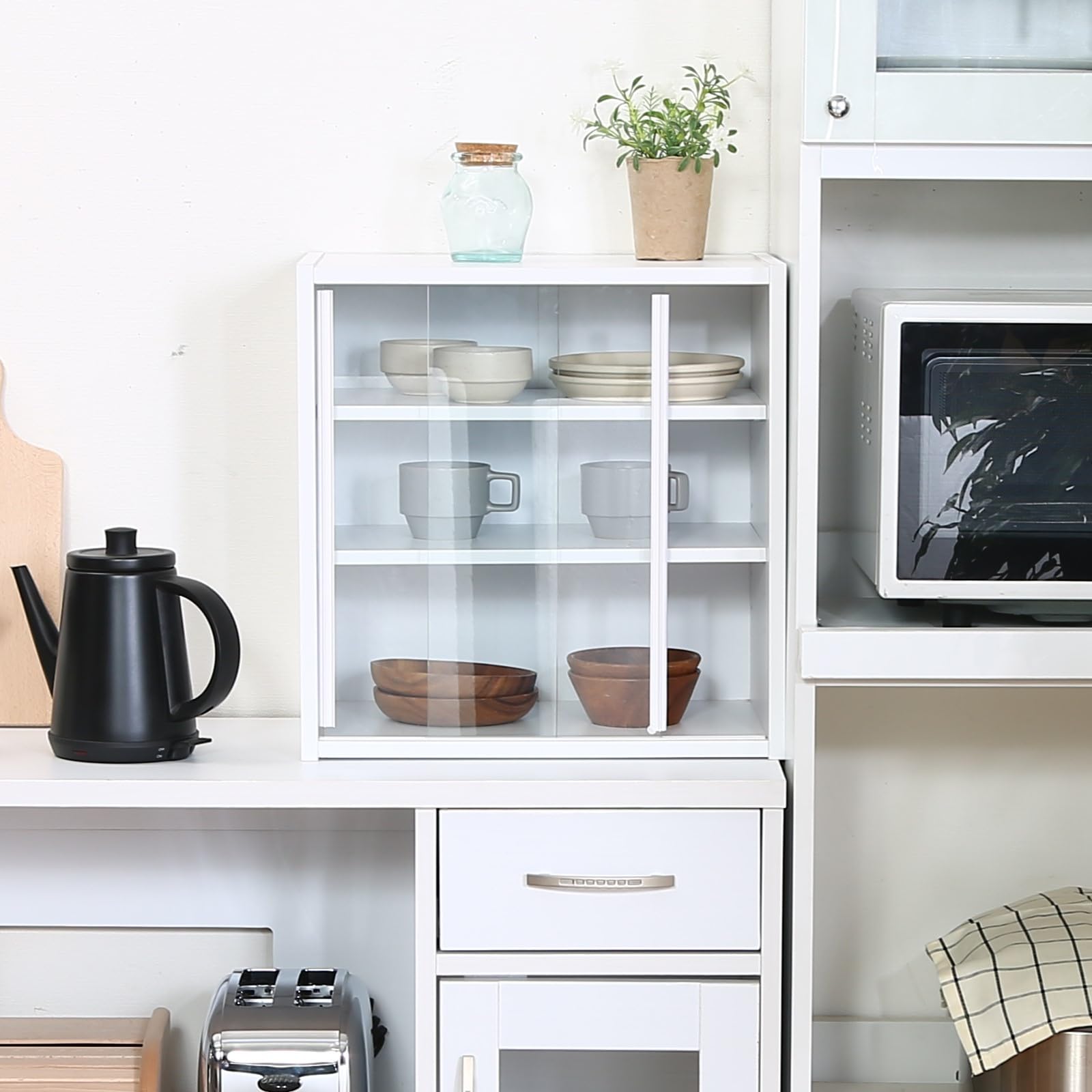 場所を取らずに設置できる、丁度いいサイズの食器棚。