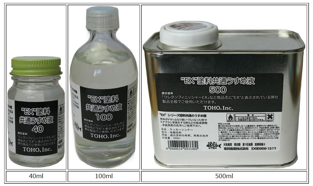 使用可能な塗料:使用品名にEXが表記されている東邦産業社製塗料全般(ウレタンクリヤーEX、セルロースセメントEX、ウレタンフィニッシャーEXなど)