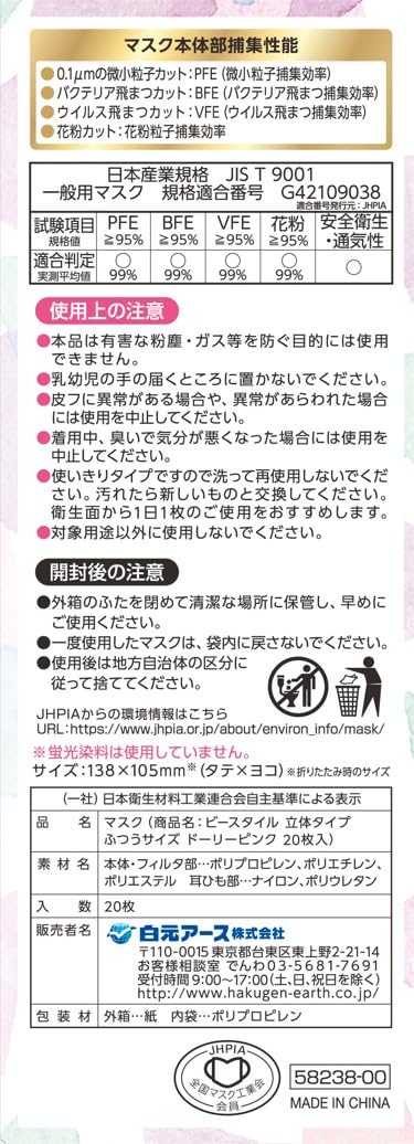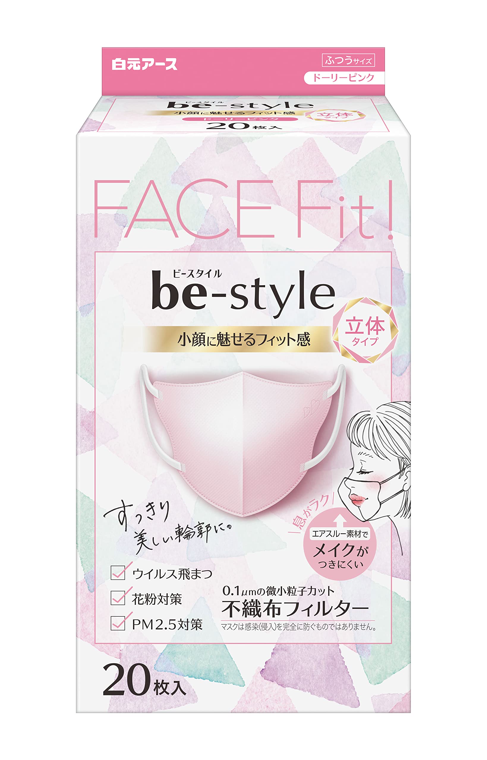 ビースタイル 白元アース 立体マスク ふつうサイズ ドーリーピンク 20枚入 JIS規格適合 耳が痛くならない幅広耳ひも メイクがつきにくい 不織布 3D
