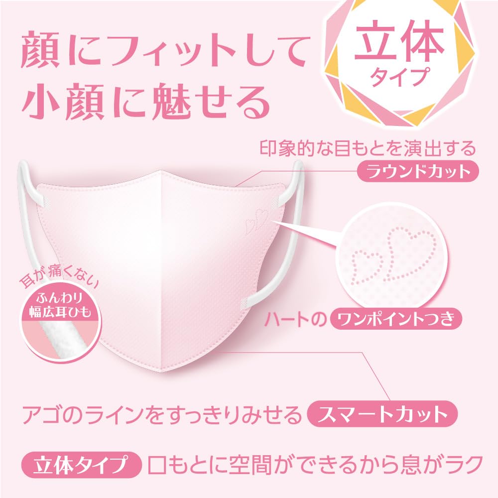 【新着商品】ビースタイル 白元アース 立体マスク ふつうサイズ ドーリーピンク 20枚入 JIS規格適合 耳が痛くならない幅広耳ひも メイクがつきにくい 不織布 3D