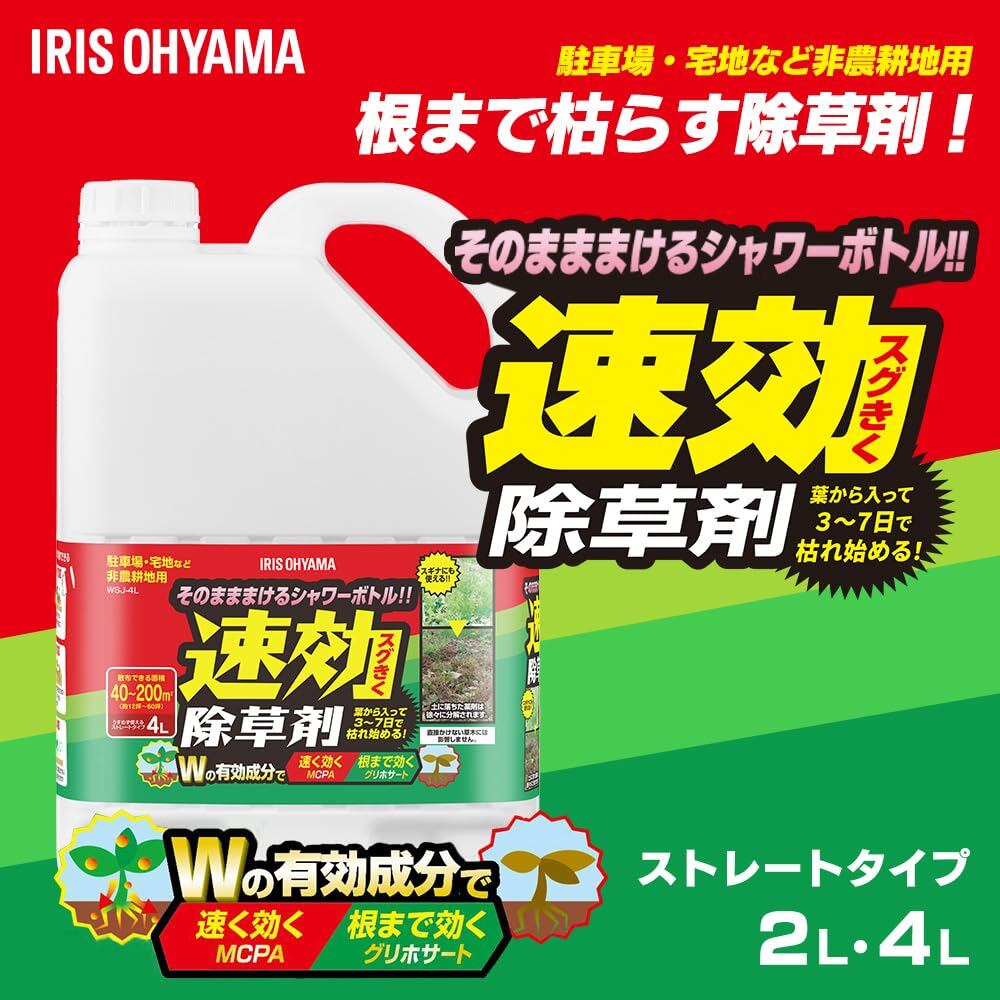 アイリスオーヤマ 【2025年発売】 すぐ効く 速攻除草剤 4L 液体タイプ そのまま使える 大容量 お徳用 WSJ-4L