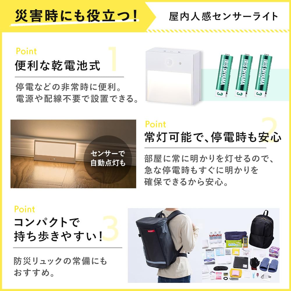 【新春セール】アイリスオーヤマ 乾電池式LEDセンサーライト パネルスタンドタイプ 置き式 自動点灯 常時点灯 BSL-SMSP