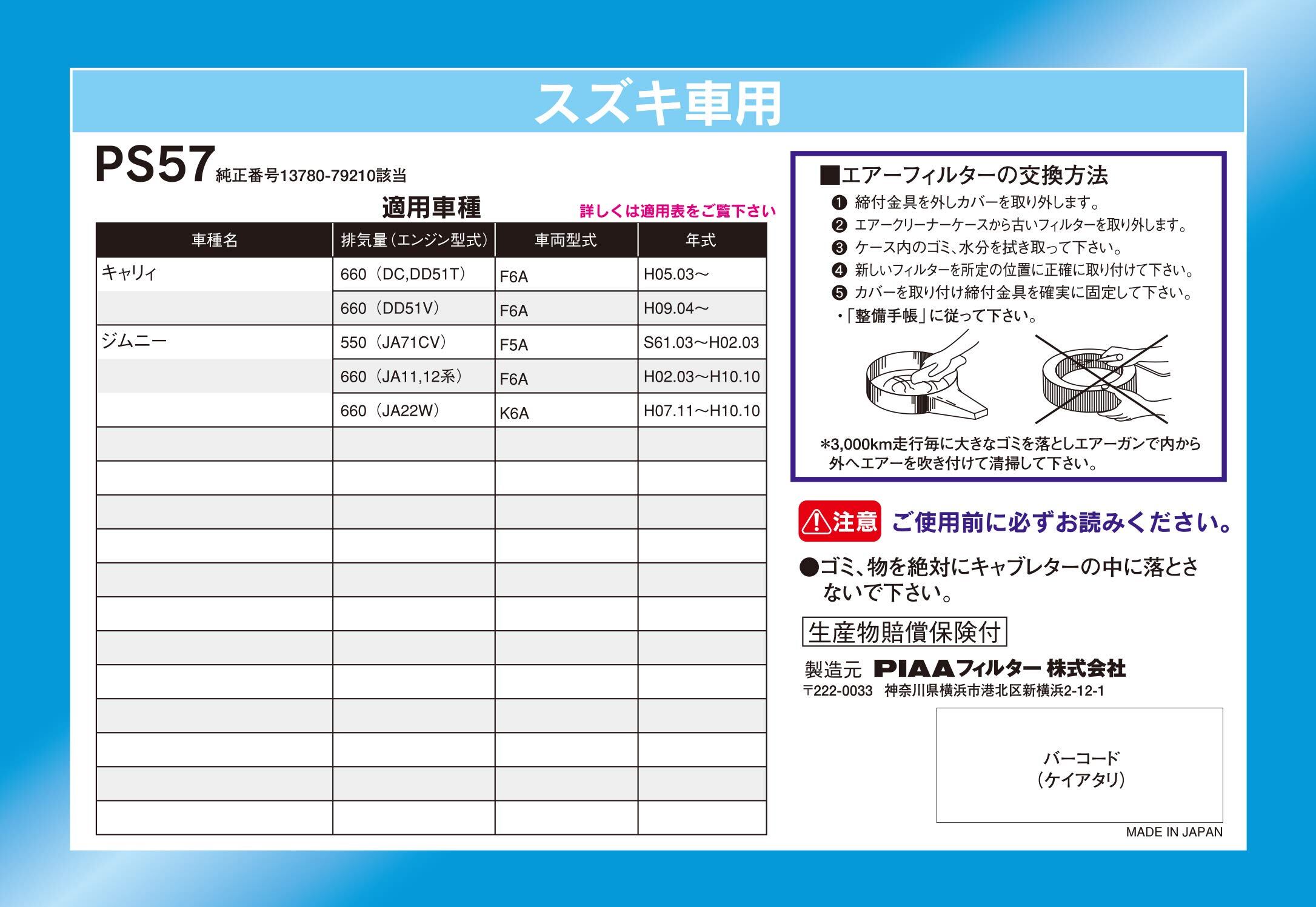 PIAA(ピア) 車用 エアフィルター AIR FILTER 1個入 [スズキ車用] キャリィ・ジムニー_他 PS57