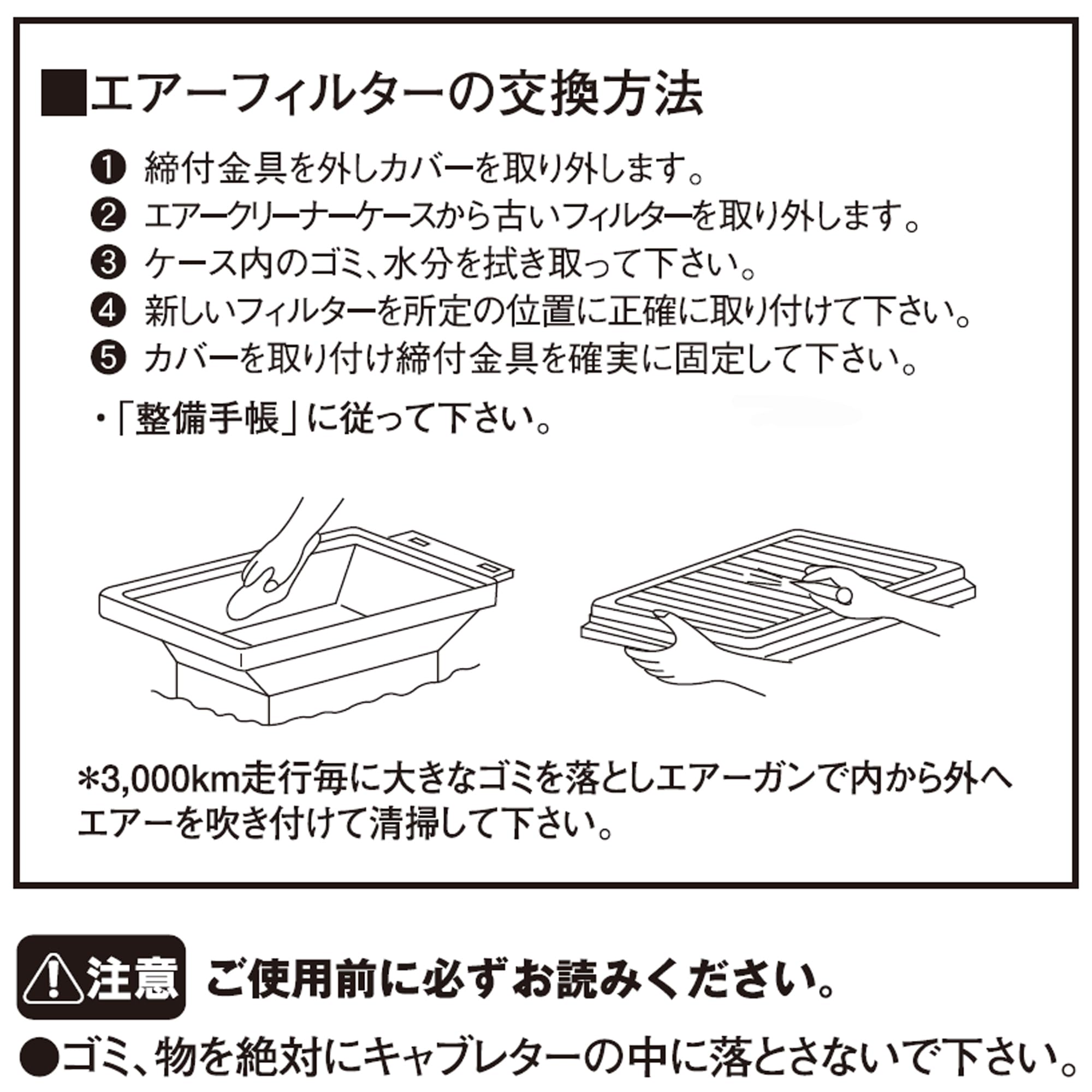 [注意] エアーフィルターをご購入の際は、必ず適用表をご確認の上、適切な製品をお選びください。