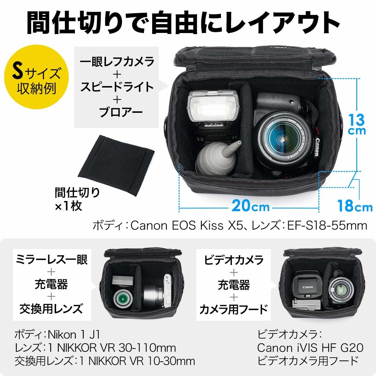 サンワダイレクト カメラバッグ インナーバッグ ショルダーベルト付 ミラーレス 一眼レフ ビデオ対応 Sサイズ 200-DGBG010