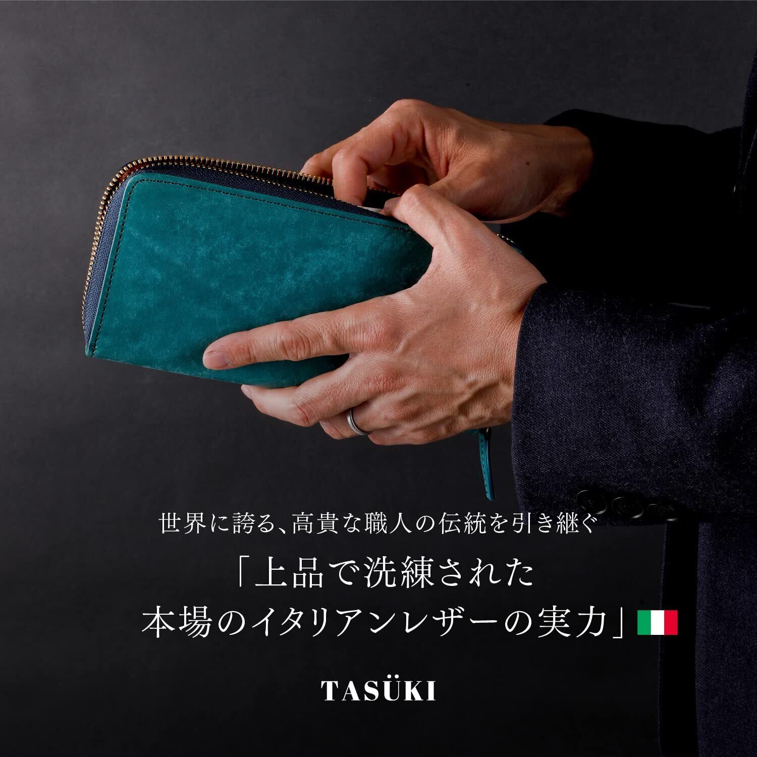 【高品質の本革】この「[TASUKI] 財布」は、イタリアンレザーを使用しており、上品で高級感あふれる仕上がりです。一流の革職人によって丁寧に作られており、使い込むほどに風合いが増します。