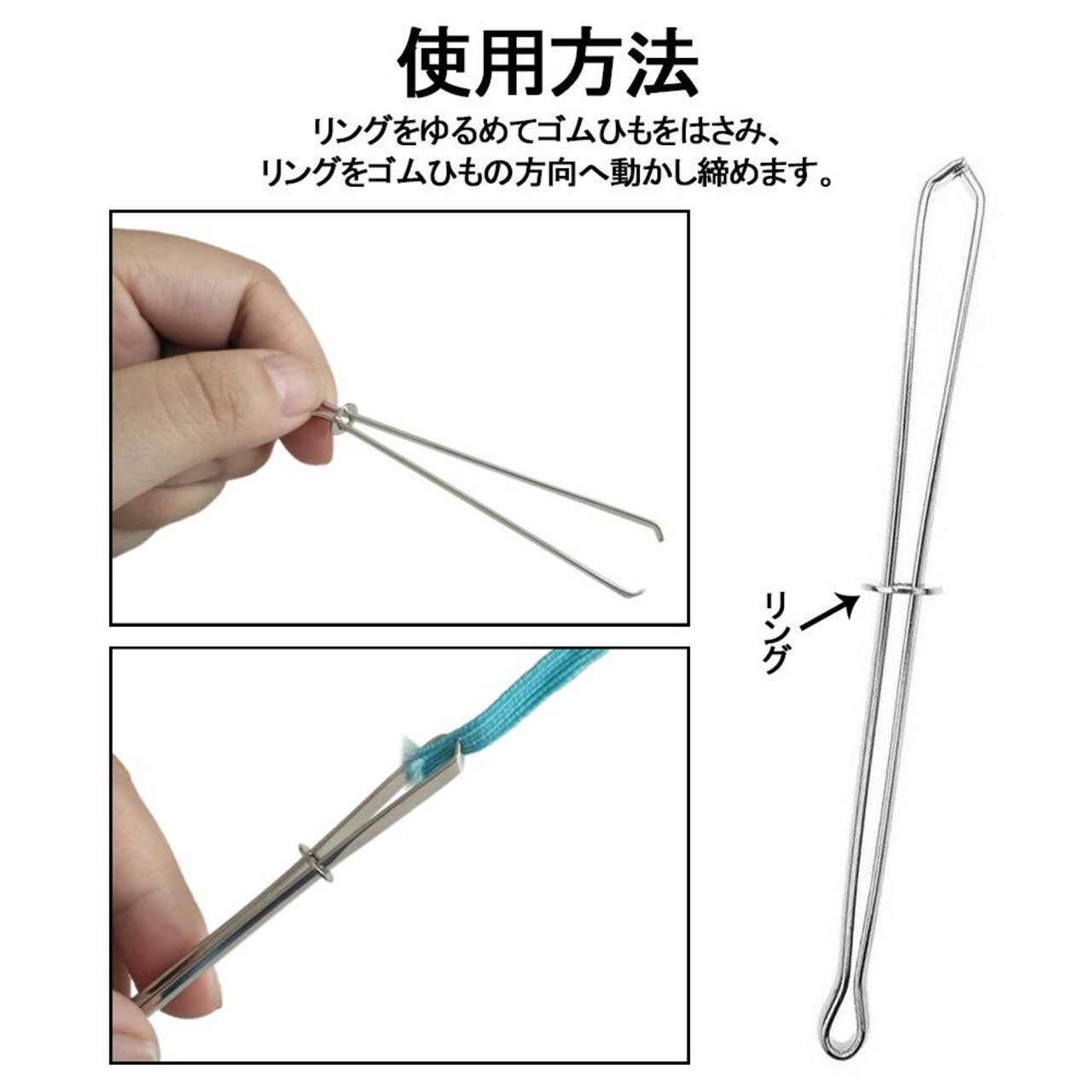 ひも通し 2本差し ゴム通し はさみ式ひも通し&玉付ひも通し ステンレス ゴムひも通し 紐通し 手作り 手芸 ハンドメイド DIY ひも/ゴムをしっかり挟んでスムーズに通す