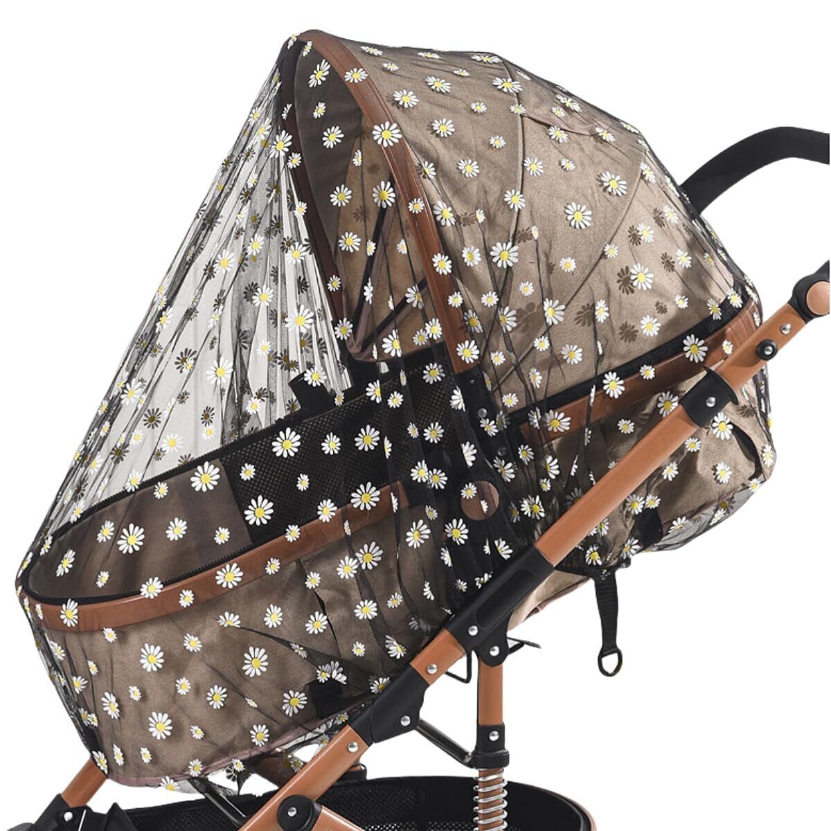 【特価セール】ベビーカー カバー 虫よけカバー 蚊帳 防虫 メッシュ 日よけ 風よけ 防風 ネット 360度全面保護 通気性 軽量 取り付け簡単 折りたたみ 持ち運び便利 おしゃれ 星柄 花柄 マルチネットカバー 黒 白 (花柄ーブラック)