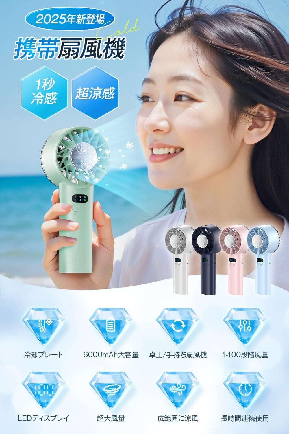 携帯扇風機 ハンディファン 【2025年モデル & -25℃瞬間冷却】 冷感プレート 手持ち扇風機 ミニファン 12枚羽根 6000mAh大容量 軽量 強力 静音 1~100無階段風量 USB-C充電式 卓上扇風機 小型 ポータブル 冷却 ストラップ付き LEDディスプレイ 熱中症対策 アウトドア/スポーツ観戦/オフィス/夏祭りなどに適用 ギフト (グリーン)