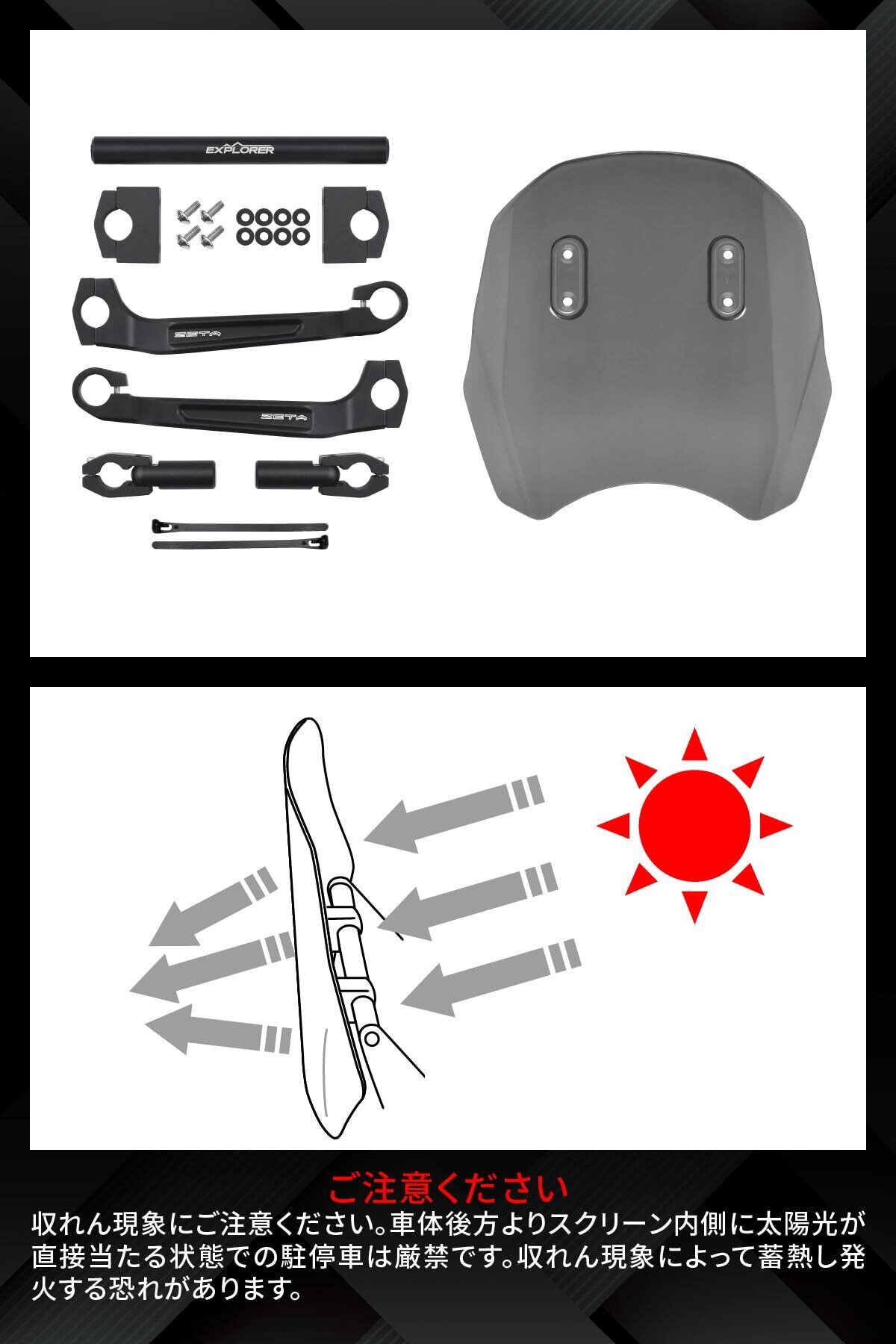 【新春セール】ジータレーシング(ZETA RACING) エクスプローラーウィンドシールド ユニバーサル ショートスクリーン