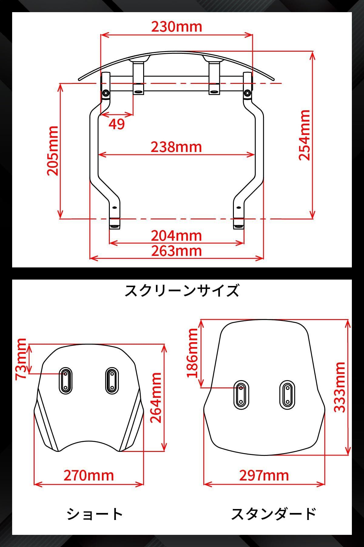 スクリーンは調整範囲が大きく、セッティングにより風の抵抗が変化します。装着後は必ず試走行を行い、ハンドル操作に支障がないかをご確認ください。