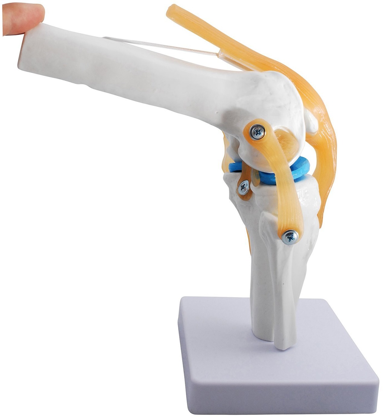 【リアルなディテール】模型には靭帯や半月板がしっかりと表現されており、実際の膝関節の動きや構造を視覚的に理解することが可能です。台座に固定されているため、安定して展示できます。