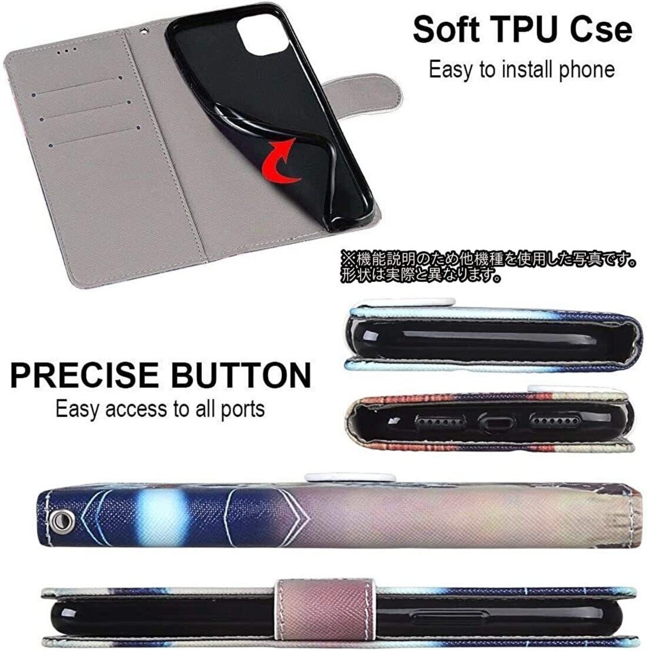 素材:合皮、TPU(耐衝撃性に優れた素材です。シリコンより硬く、強化プラスチックより軟らかい)