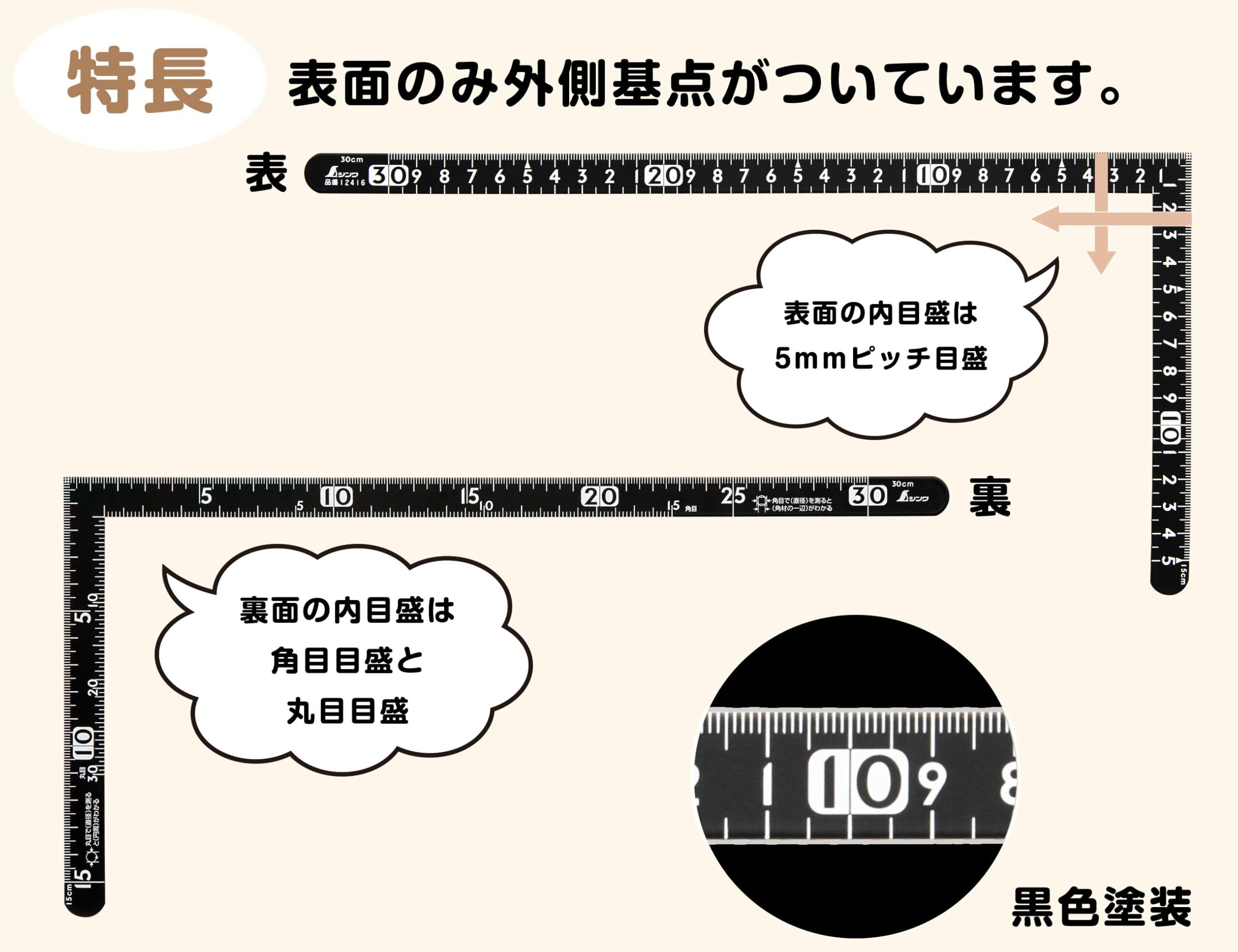 直角確認、長さ測定、ケガキ作業などDIYに便利です。