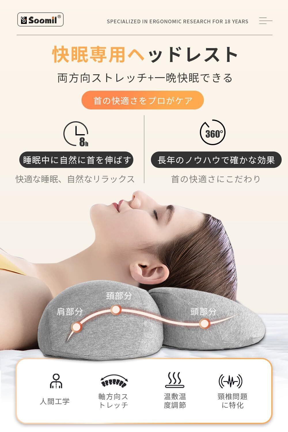 【新着商品】【睡眠の専門家監修】Soomil 枕 低反発 首枕 首が痛くならない まくら 安眠枕 ネックピロー 伸ばす 首や肩の負担にならない 通気性 カバー洗濯可 誕生日プレゼント 男性 女性 ギフト 母の日 父の日(ライトグレー)