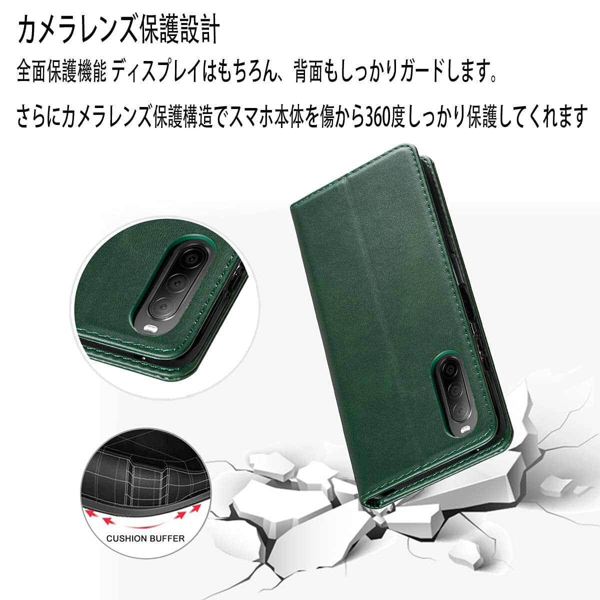 【スタイリッシュで機能的なスマホケース!】この手帳型ケースは、Sony Xperia 10 IIIのために特別に設計されており、耐衝撃性に優れた高質PUレザーを使用しています。美しいグリーンカラーは、洗練された印象を与え、おしゃれにスマートフォンを持ち歩くことができます。