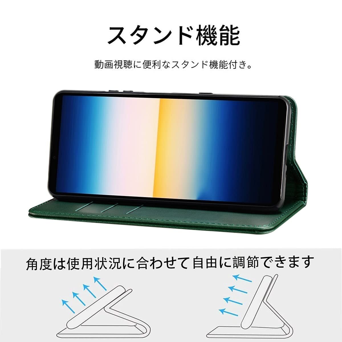 Xperia 10 III SOG04 ケース 手帳型 高質PUレザー ソニー Xperia 10 III カバー Sony SO-52B ケース エクスペリア10 III 耐衝撃 皮革 内蔵マグネット開閉式 ベルトなし スマホケース おしゃれ カードポケット スタンド機能 便利 スプラット同梱 携帯ケース (グリーン)