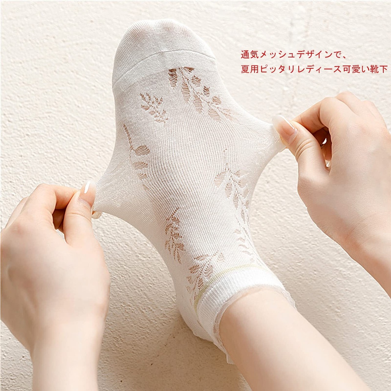 【かわいい女性用 フリル レース靴下 】この夏用 靴下 レディースはファッションな花柄があります、優雅な花柄とレースがあります、足首部分は高級縫い代のデザインで、足首にピッタリと合わせ、足を擦らない。踵部分は浅い履きのデザインで、踵にピッタリと合わせます。レースデザインで、どのようなシーンでも対応できるようにシンプルさに拘りました。シンプルな中にもオシャレさがあるように、幅広い年齢の方にご使用頂いておりますシースルー靴下 花柄。