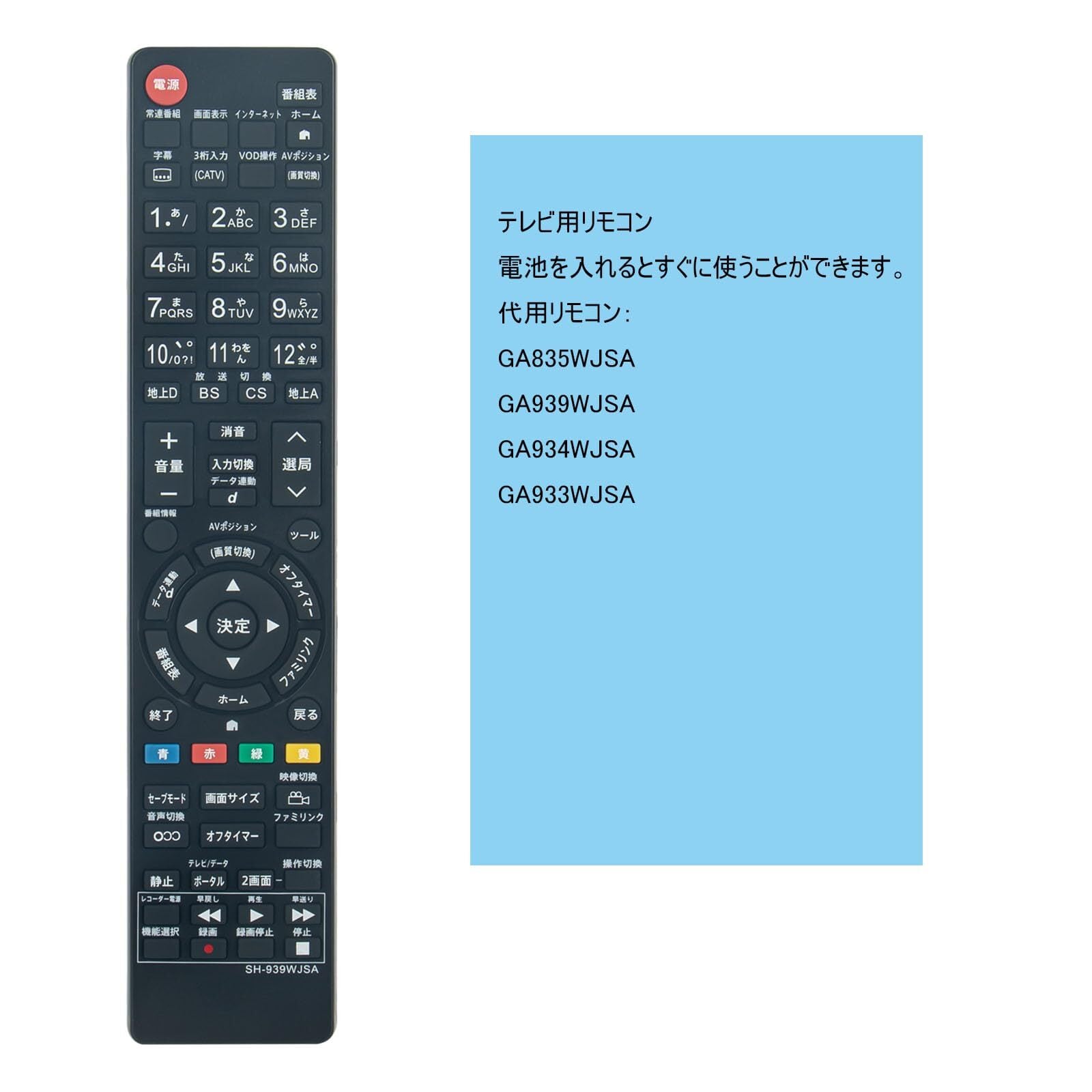 ・代用リモコン:GA835WJSA GA939WJSA GA934WJSA GA933WJSA