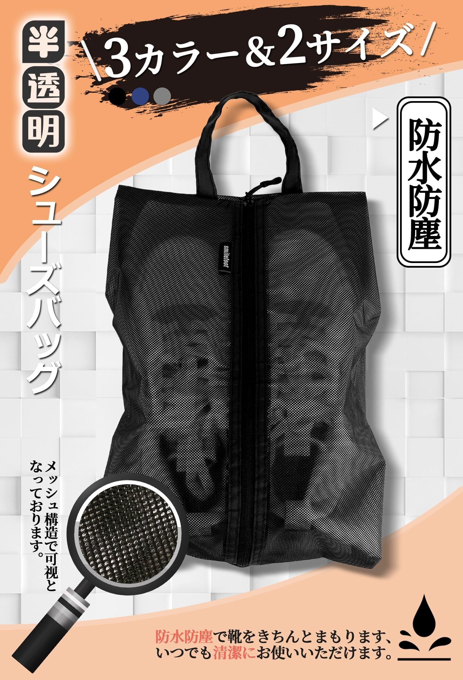 smilefoot [さらに大きいサイズ] シューズバッグ 防水防臭 防汚防塵 半透明 シューズケース スポーツ 超軽量 靴入れ袋 男女兼用 アウトドア 出張 旅行 ゴルフ (拡大版-黒)