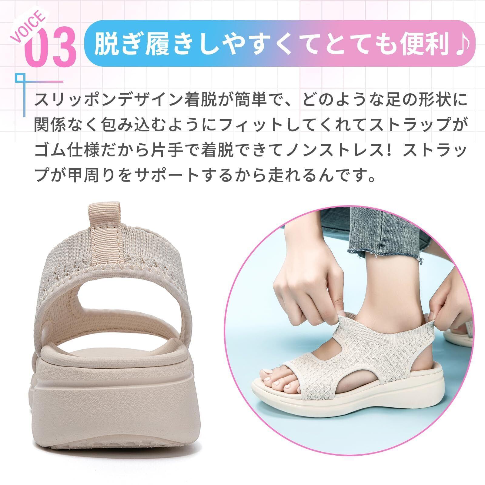 [STRDEOUT] レディース スポーツサンダル ニット メッシュ 夏 オフィス サンダル 歩きやすい 厚底 軽量 通気 ウォーキング オシャレ